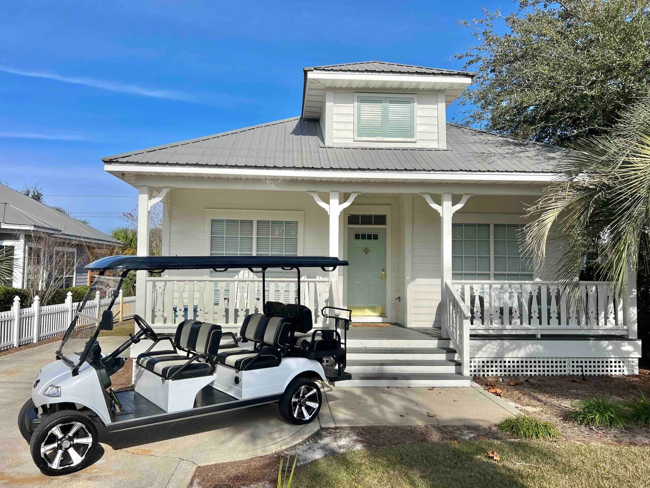 The complimentary bikes and 6 seater golf cart are great ways to explore the charming neighborhood of Crystal Beach and it’s many beaches, restaurants and shopping destinations!