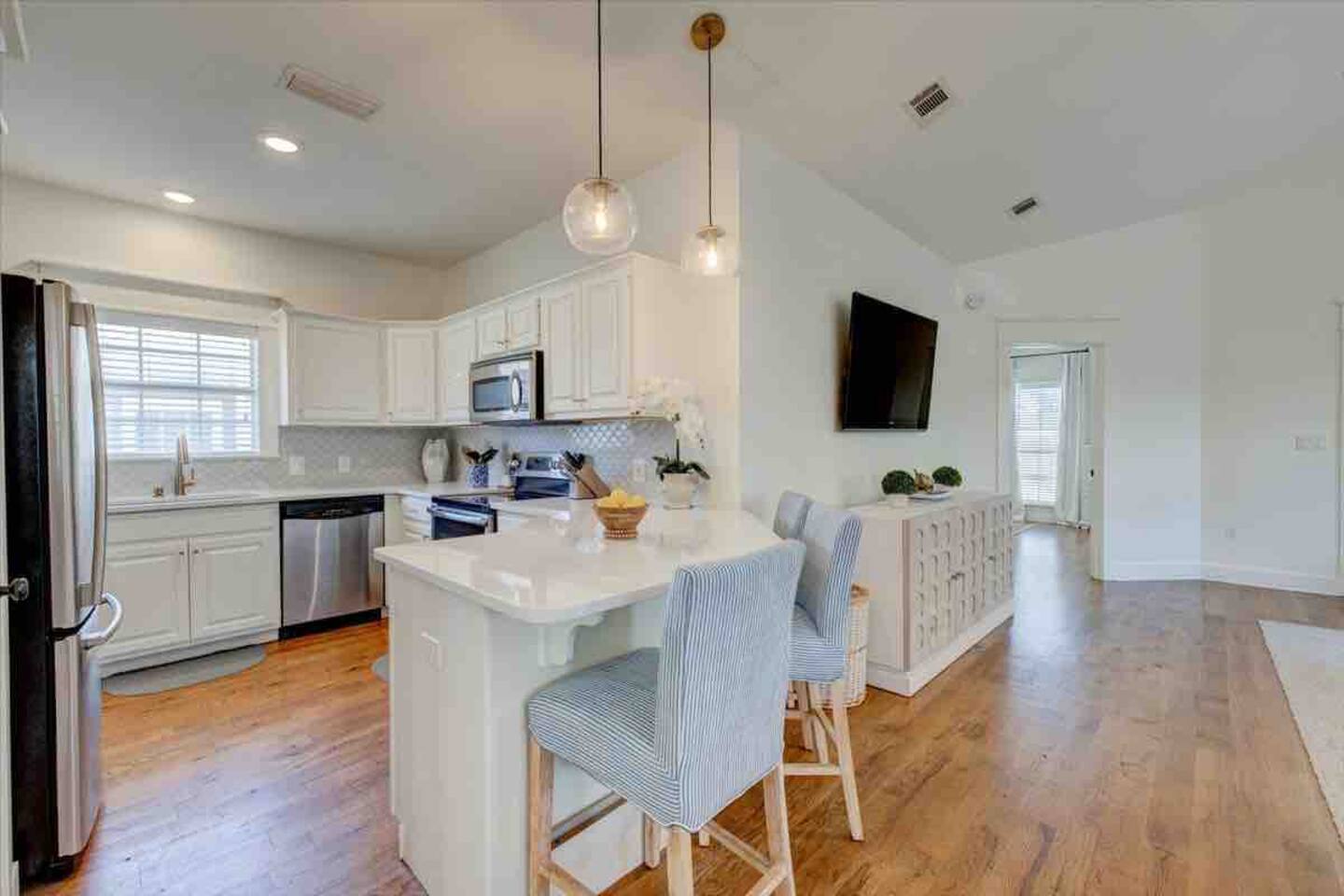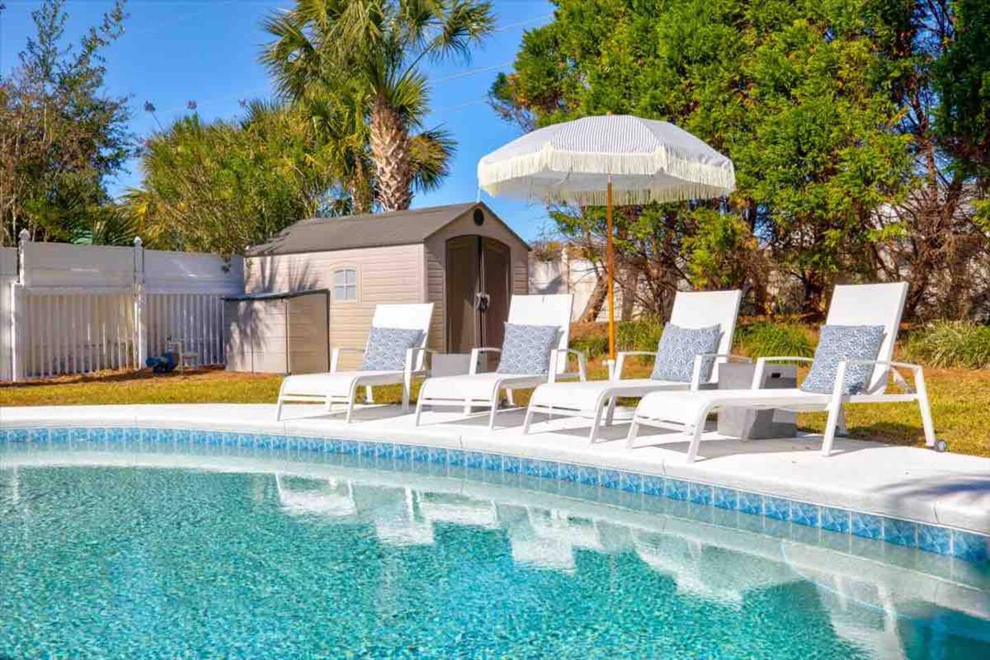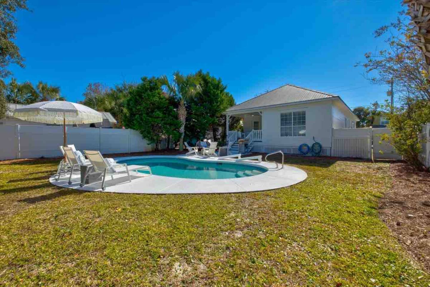 ******VIDEO TOUR on YouTube. Please search “Hidden paradise Destin house”. *********** This newly renovated three bedroom two bath home is completely yours, including the 6 seater golf cart, private pool, large fenced backyard, and four bicycles! A sofa bed and bunk room gives plenty of space to spread out