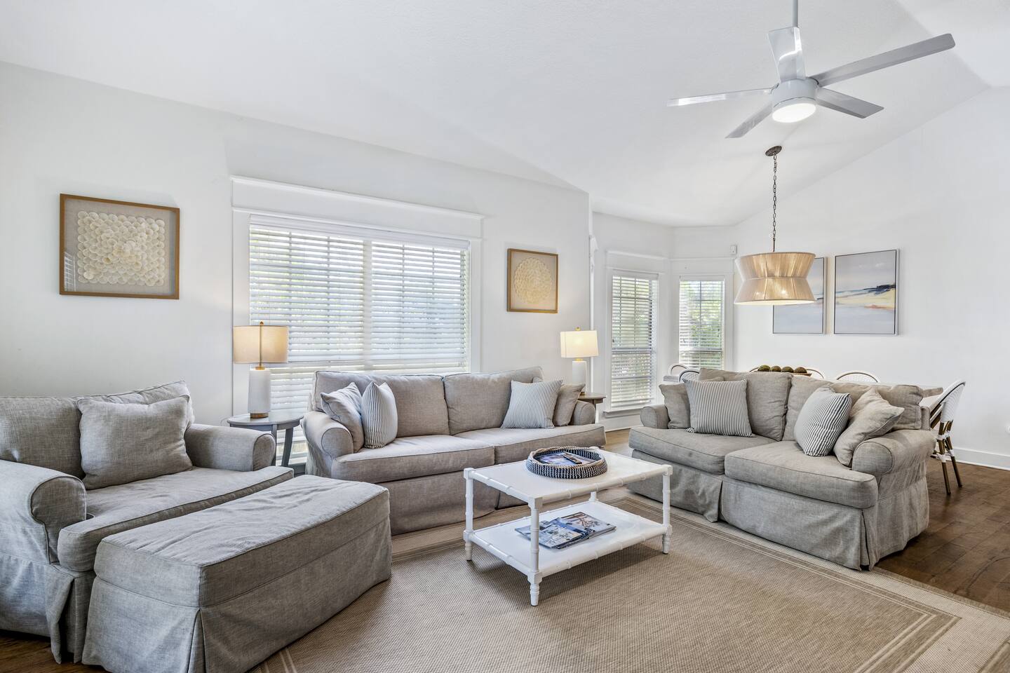 Find yourself in Hidden Paradise, a curated cottage home in Destin's highly sought-after Crystal Beach. Featuring a complimentary 6 seater golf cart, the 2 blocks to the sugar sand beach is a breeze. Come home to a private pool and full-sized fenced backyard for some bbq on the grill or a game of cornhole. 3 bedrooms. Sleeps 10. Provided mini-crib and highchair...bring the family! Its the little things that help make big memories, and thats what is awaiting at Hidden Paradise!